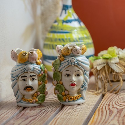 Meravigliose ceramiche tipiche della tradizione siciliana legate ad una romantica quanto triste leggenda. Solitamente in coppia raffigurano un Moro e una giovane donna. Ideali per impreziosire ed arricchire ogni tipo di ambiente. Disponibili in diverse dimensioni e tipologie.